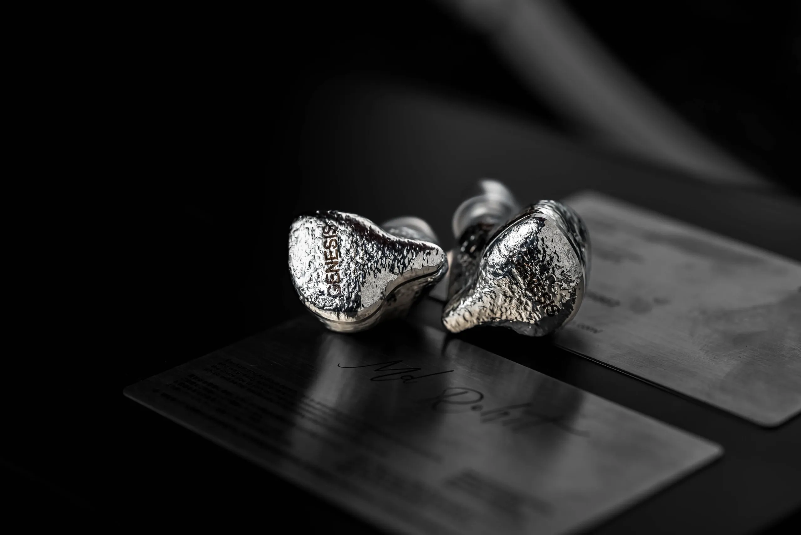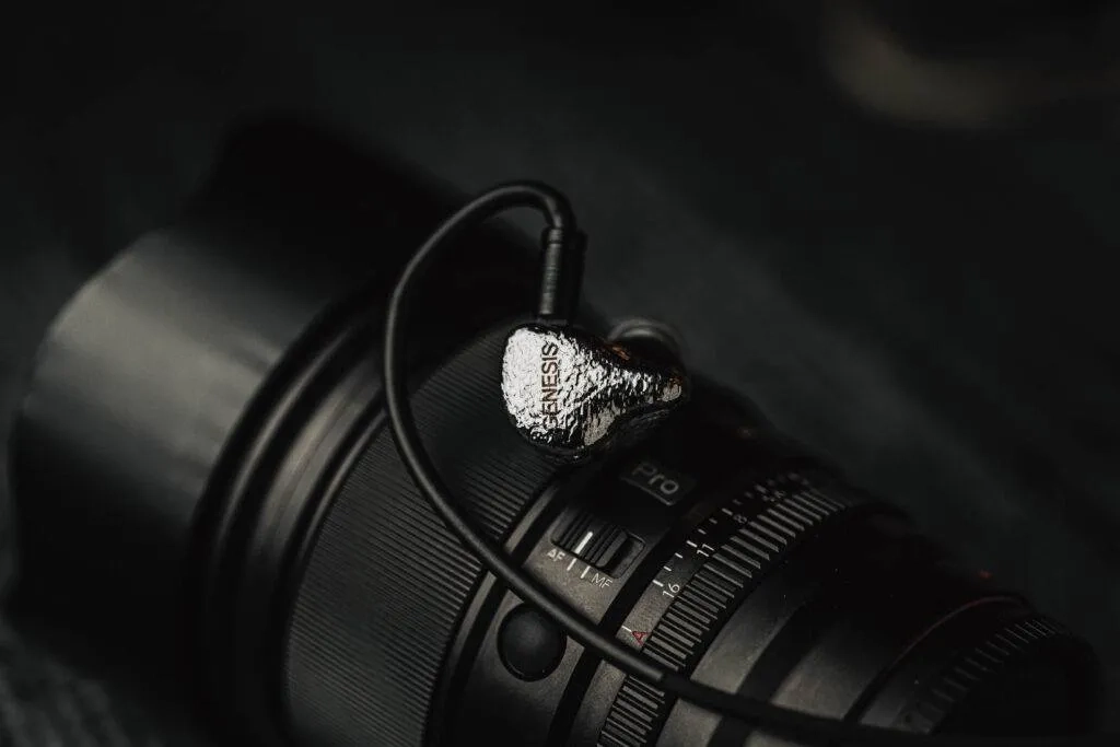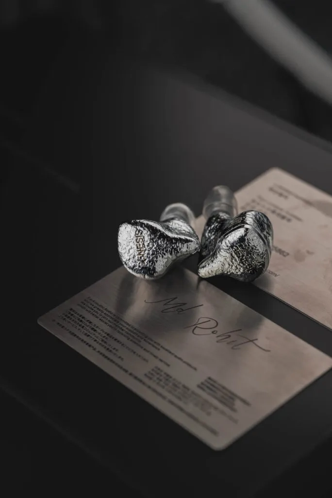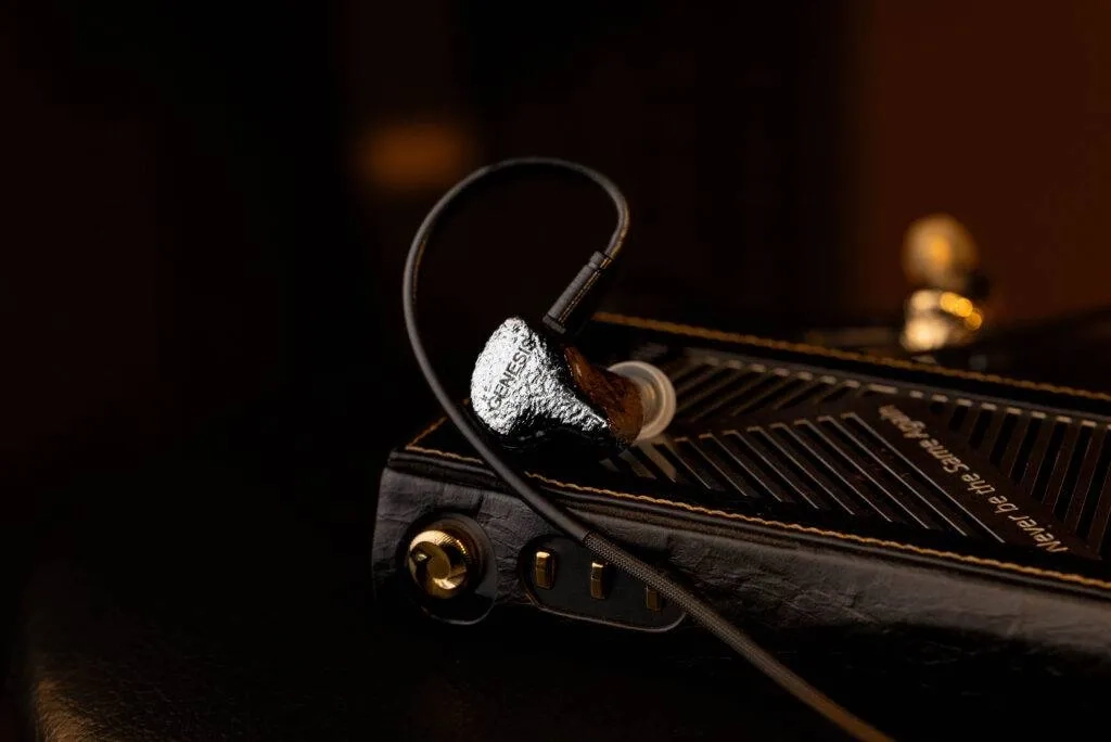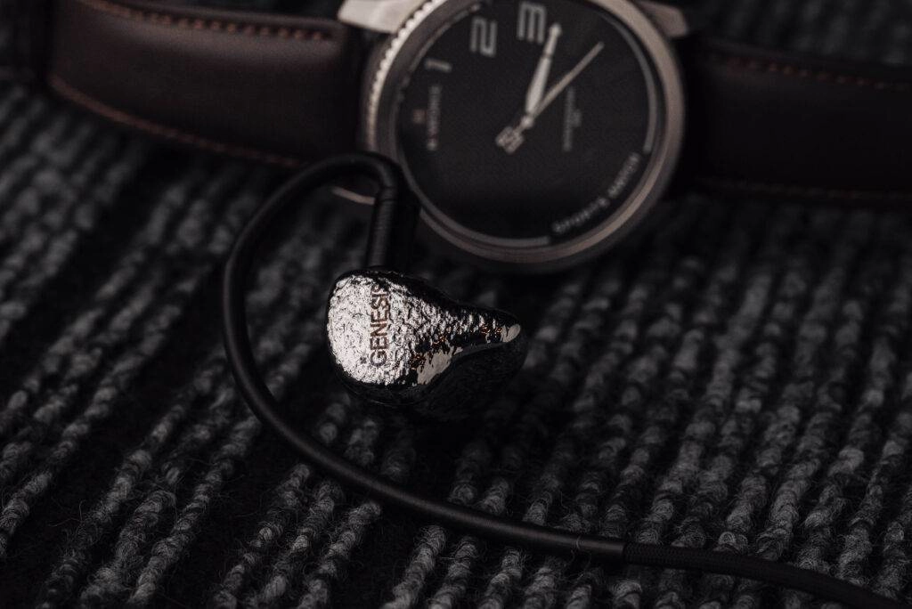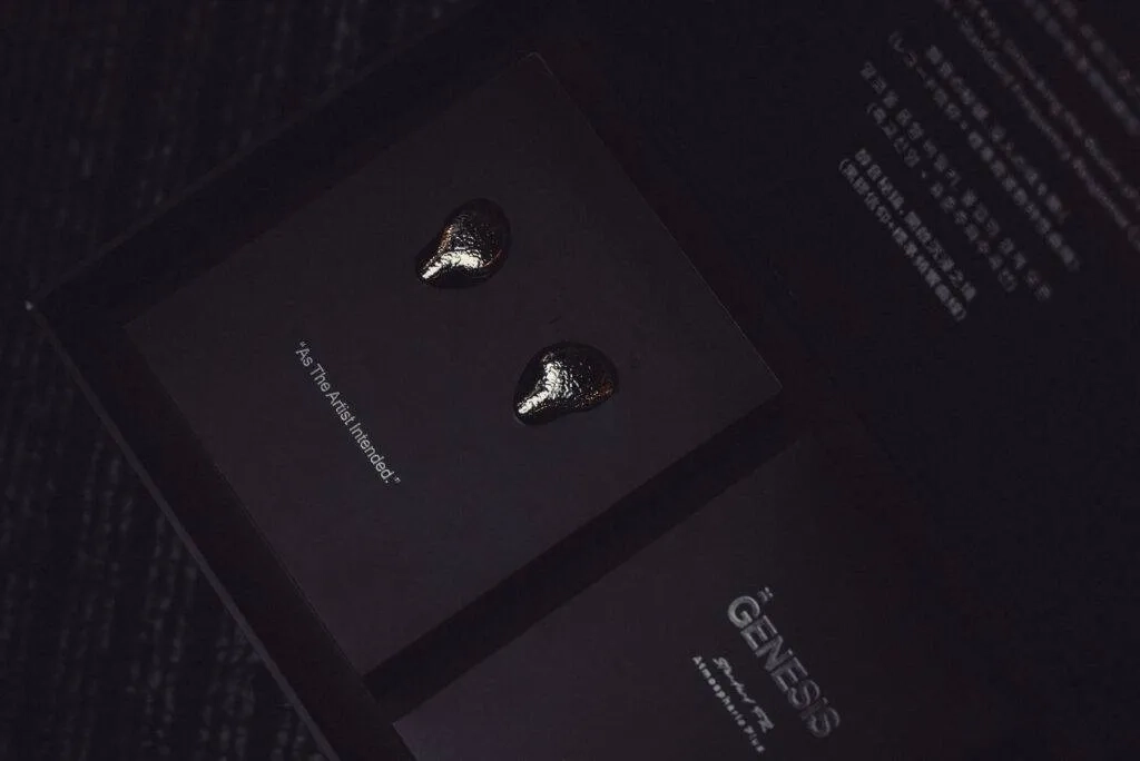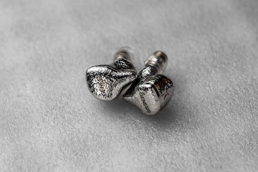 Design-wise, GENESIS doesn’t go with the usual flat or mirror-polished metal look. Instead, it features this meteorite-style metallic silver surface, which has an irregular and textured pattern. The surface reflect light unevenly and gives a kind of organic, handcrafted vibe rather than a factory-polished one. It almost feels like a piece of jewelry, something more artistic than just a regular audio product. According to EarAcoustic, this finish comes from a multi-step hand polishing and electroplating process, and that depth on the surface is clearly visible in real life.