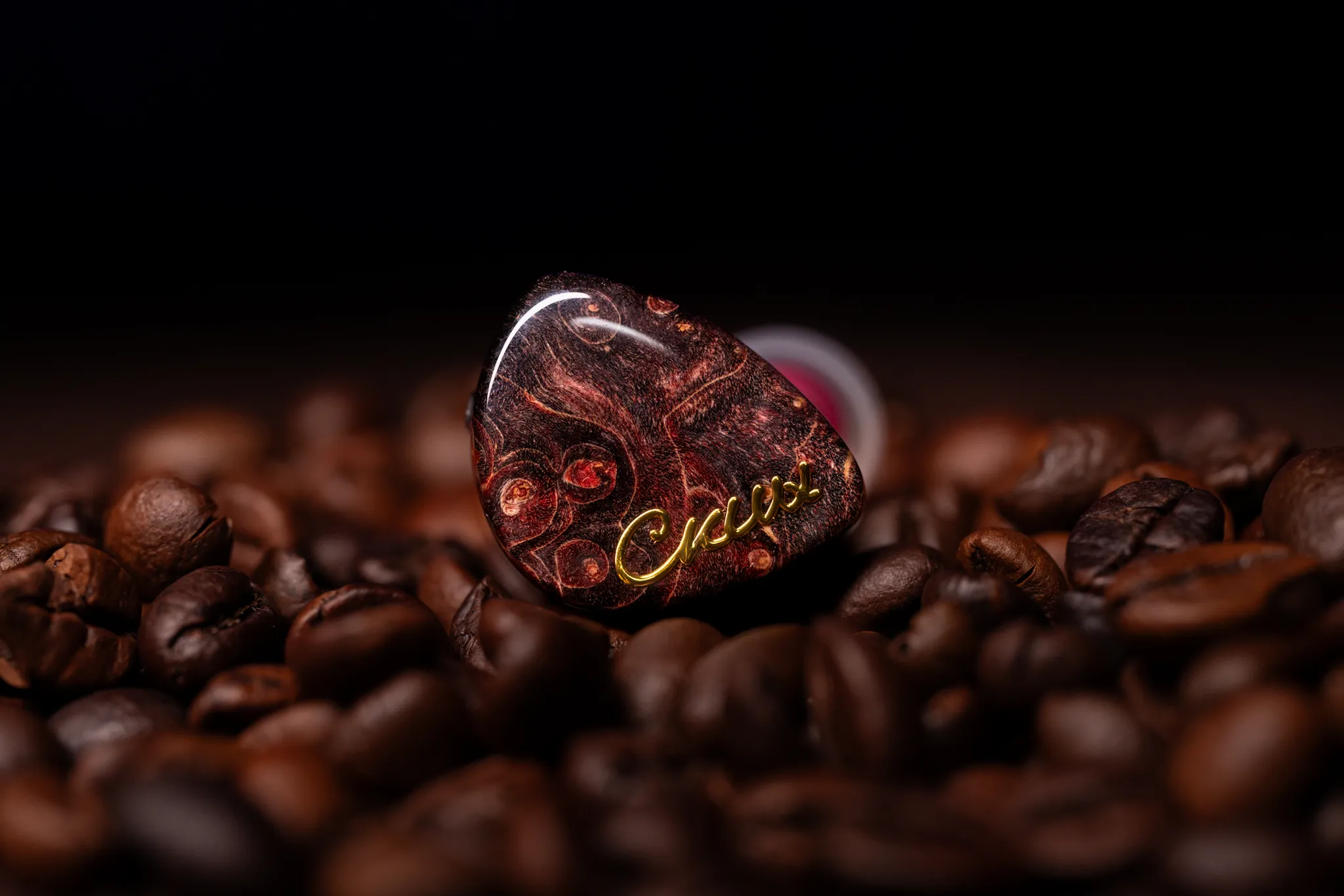 Now, the faceplate is where things get really special. They used wood and resin, and the result is stunning. Each unit looks a little different because of the natural texture of the wood, which makes every piece feel unique. The faceplate reminds me a bit of DUNU Da Vinci, but Myer Audio gave it their own twist. The wooden texture, combined with the glossy resin, is really eye-catching. Honestly, I’d give the design 5/5—it’s just that good.