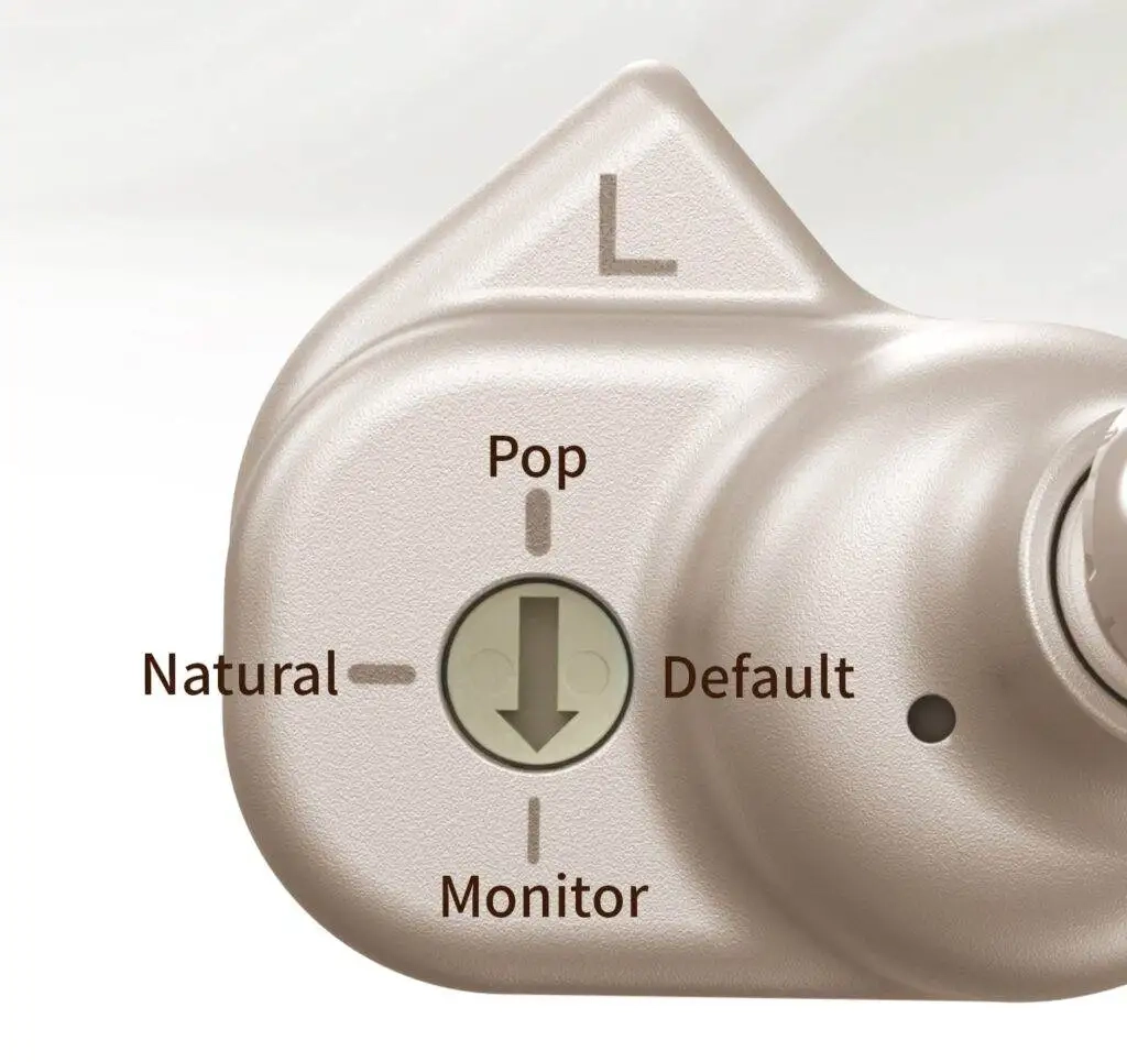 Tanchjim included 3 nozzles—Brass, Titanium, Stainless Steel or “Standard”—and a 4-position tuning wheel on the back of the IEM shell. The four modes are: